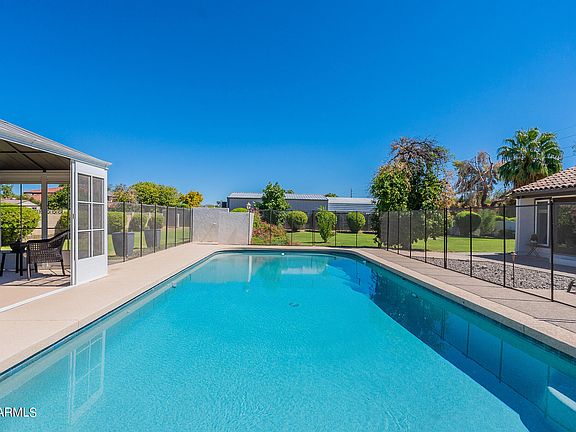 This custom, basement home is situated behind a private gated entry on a 39,0000 sqft lot with a stunning pool, plenty of green grass, and mature trees, including several new citrus trees. With newly replaced front gates and the fresh exterior paint job, the property boasts impressive curb appeal. As you step inside, you'll be greeted by a bright and airy interior adorned with a neutral color palette and soaring vaulted ceilings. The main floor offers an inviting living room that flows seamlessly into the family room, anchored by a cozy gas fireplace—perfect for gatherings. The spacious kitchen and adjacent formal dining area make this home an entertainer's dream. The main level also features a spacious master suite with a newly updated spa-like bath, along with two additional bedrooms and another full bath, providing an ideal layout for family living. Head downstairs to discover a versatile game room/family room, ample storage space, an extra bath, and two additional bedrooms, offering plenty of room for guests. Step outside to your own back yard oasis, complete with a recently resurfaced pool, a screened-in gazebo, and an abundance of space and endless possibilities for expansion. This outdoor space is perfect for relaxation and entertaining. For added peace of mind, all windows and doors were replaced in March 2024, ensuring modern efficiency and security. A water softener and RO system were recently added as well. You will appreciate the additional drive on the west side of the property leading to additional storage, while the east side is set up for RV parking, complete with 30-amp service.