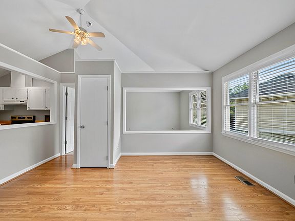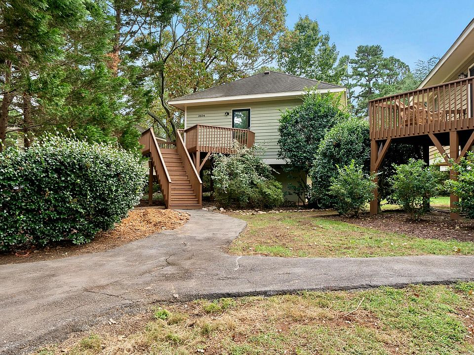 Perched among the trees in one of Raleigh's most coveted locations, this architecturally striking round home gives tucked-away vibes even though you're quite literally minutes to everything. Hop on 440, 40, or Glenwood Avenue in minutes and the Triangle is yours to explore! Need off campus housing near NC State University or Meredith College? This is it! Are you a young (or mature!) professional who wants easy access to Downtown Raleigh, North Hills or RDU Airport? Still the one! An investor eyeing proximity to The Lenovo Center or Umstead State Park? This spot hits the mark EVERY time! Inside, you'll appreciate vaulted ceilings lifting every room and natural light flooding in through walls of windows. The open kitchen, dining and family room make entertaining a breeze, while the spacious primary suite with dual closets and an ensuite bath offer a true retreat. Bonus points for practicality: the HOA covers nearly everything...exterior maintenance, landscaping, roof (new one coming soon!), decks, master insurance - so you can spend your time doing what you love without worrying about maintenance. Recent updates by the homeowner include brand new kitchen appliances, replaced water lines, fresh paint throughout, new flooring, resurfaced tub/shower AND a newer water heater...making this home turnkey yet ready for your personal touch. This is the kind of Raleigh gem that doesn't come around often. Welcome home!