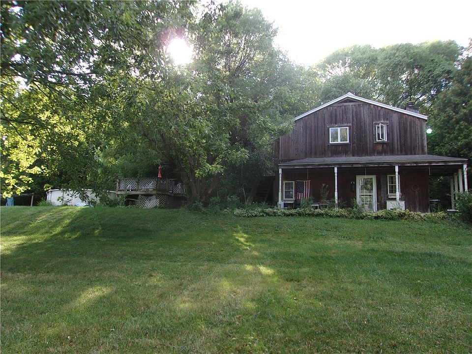 Contemporary in Bloomfield tucked off the road. Full, walkout basement with workshop. Open great room with cathedral ceiling. Two bedrooms, full bath on main floor. Upstairs is a bedroom with a deck. Large yard with pool. Convenient to Honeoye and Canandaigua.