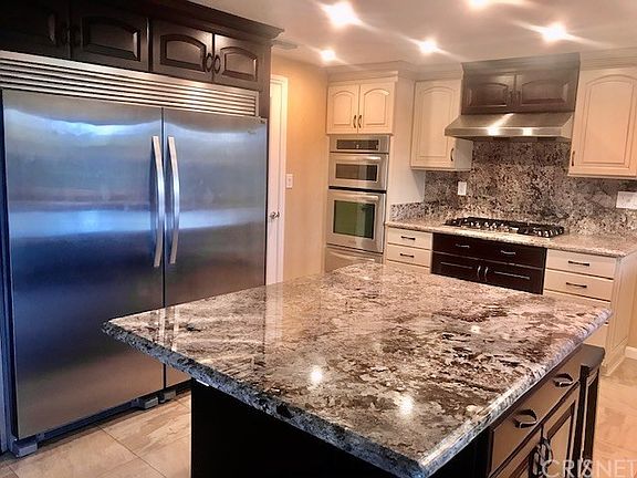 Gorgeous 4 bedroom and three bath home FountainWood home located in desirable neighborhood in Central Simi Valley with MOUNTAIN VIEW. Extensive upgrades including updated kitchen cabinets and appliances, granite counter tops & kitchen island. Tile & laminate & carpet flooring, marble entry, huge side by side refrigerator is included. Remodeled bathrooms with marble counter tops, master bathroom features standing shower plus Jetted tub, reverse osmosis system, wood shutters, double pan windows through out, gas fire place was converted electric fireplace , new roof overlayment 5 years ago, $35K (7.8KW) solar panel has been paid in full , security and alarm system monitor are included. One downstairs bedroom with 3/4 updated bathroom and 3 bedrooms upstairs. Large Master bedroom features with ceiling fan, walk-in closet , balcony overlook beautiful mountain view . One of the 3 car garage was converted to an office with permit, central air and heat, possible RV access, open patio in beautiful backyard with fruit trees, great curb appeal. The property is located in an excellent location near schools, DMV , Kaiser, movie theater, police station, hospital, markets , restaurants and walking distance to Lemon Park.