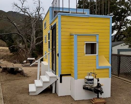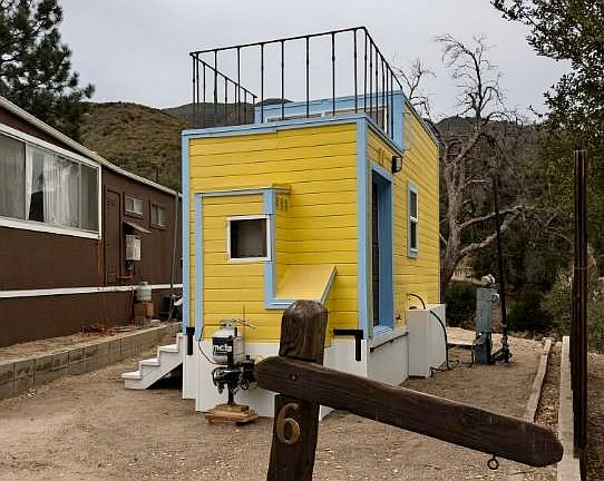 Tiny house is unfurnished. Featuring a full bathroom with toilet, sink and shower as well as kitchenette and a living area with bedroom lofts.