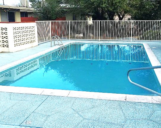 This is a super cute 1 bedroom 1 bath end unit with a private fenced yard! The kitchen has been updated recently and there is a pool and laundry on site! One covered parking spot is included!