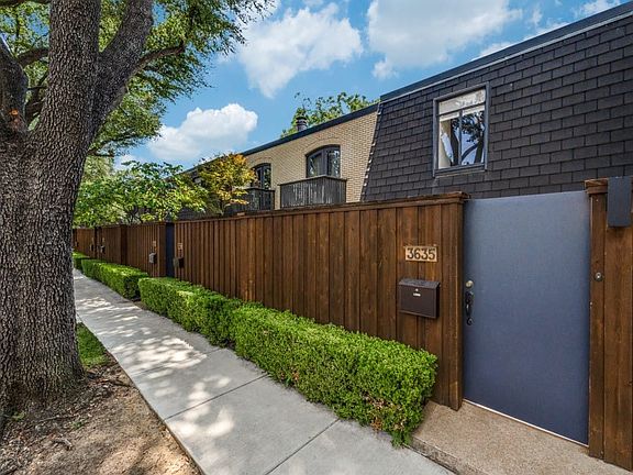 Gorgeous remodeled Mid Century townhome that has been created into beautiful Light and Bright Contemporary Design and is located in Central Location of Dallas that backs up to Highland Park. Street door opens into your own private barge courtyard designed for gracious outdoor living. You will then step into Grand Room space with sliding patio doors that streams in light, bringing outdoors in. Open Floor plan blends Living, Media and dining together to look into beautiful Gourmet Kitchen with SS appliances, Gas cook Top, Marble counters and lots of cabinets, Next to lovely half bath. The 1st floors is white porcelain, & the stairs & 2 Bedrooms new light Hardwoods. Skylights. Though only one bath, which is beautiful & chic, it has a large walk in shower with sprayers. 2 large Bedrooms with built in closets. 2nd Patio out back door is that with extra storage where you can relax and grow herbs in pots. Great location with beautiful walking areas nearby 2025-10-01