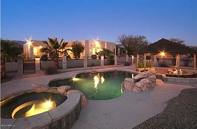 For more information on this property, contact the Listing Agent, Rebecca Maher at (520) 237-3939 or tucson@soldbyrebecca.com. Simply spectacular custom Southwest contemporary home on over an acre with captivating mountain, city, and sunset views. Inviting courtyard entry with 4' Alder door. Immaculate 4 BR, 2.5 BA plus den features split bedroom & great room design. Breathtaking wall of windows, soaring ceilings, art niches & gas log fireplace. Luxurious master suite boasts steam shower & jetted tub. Newly remodeled gourmet granite kitchen with rich maple cabinetry and top of the line SS Thermador appliances. Fantastic backyard designed for entertaining w/sparkling pebble tec pool, spa, waterfalls, built in swim up bar & BBQ . Expert landscape design with lush grass, expansive flagstone patios & fountain. A true desert oasis offers the ultimate outdoor living amenities. No expense has been spared!