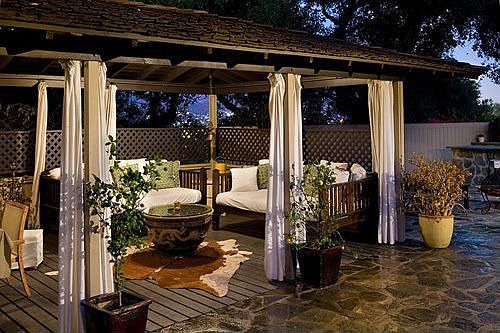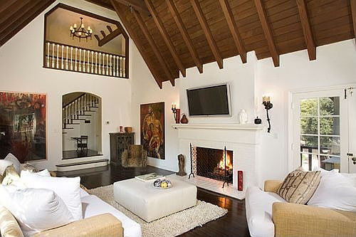 interiors with vaulted wood-beamed ceilings in the living room and master bedroom, dark hardwood floors and original casement windows co-exist perfectly with the high-quality updates to the kitchen and bathrooms. A spacious backyard with outdoor kitchen and cabana heightens large-scale entertaining possibilities in this residence, which includes 4 bedrooms, 4.5 bathrooms, den with fireplace and two-car attached garage.