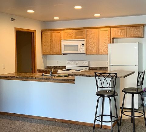 - This unit features a full-size fridge stove, microwave, & dishwasher!