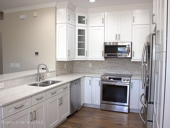 Updated nearby bathroomTimeless travertine floorsUpdated glass showerStainless steel appliancesSoft closing cabinets