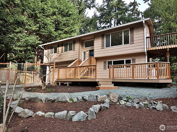 Beautifully remodeled split-entry home situated among the evergreens on a peaceful cul-de-sac. Freshly spruced-up home welcomes you with a pretty front door & is ready for a new owner to move right in! A classic, split-level home has a brand-new deck for entertaining and the interior features new paint, carpeting, LVP flooring & gleaming, refinished, genuine hardwood floors. All new appliances including range & oven, microwave, dishwasher, refrigerator and washer & dryer. New granite counter-tops, quartz tub & shower surrounds and so much more! Scatchet Head Community has amazing amenities including an indoor swimming pool, clubhouse, sport courts, boat launch, beach, picnic area & more. Low maintenance yard means more time at the beach!