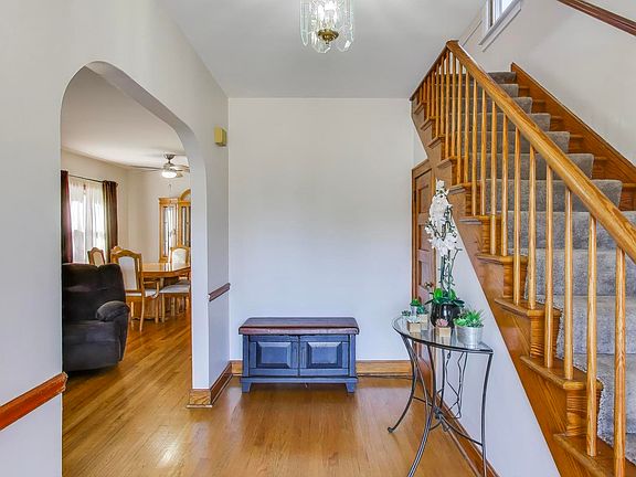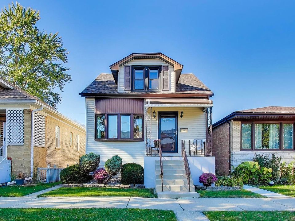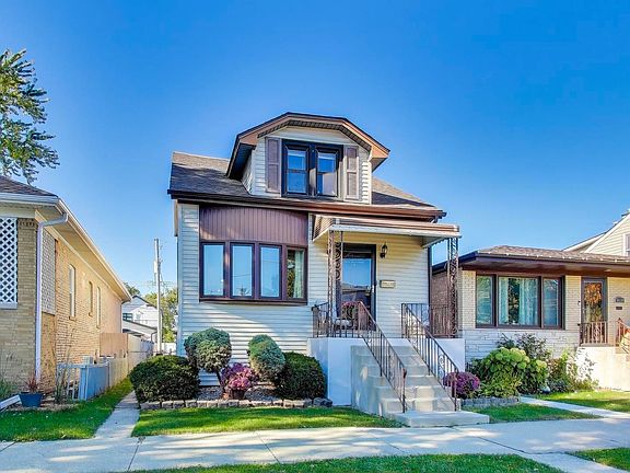 Welcome home! Nestled in the highly sought-after Dunning neighborhood, known for its top-rated schools, parks, and community charm, this stunning two-story A-Frame residence offers 4 bedrooms plus an office, 2 full bathrooms, a finished basement, and a backyard built for entertaining. Step inside to discover a thoughtfully designed floor plan featuring gleaming hardwood floors and abundant natural light throughout. As you approach, you'll be captivated by the home's classic curb appeal and welcoming front foyer, which opens to a spacious living room that seamlessly flows into a formal dining room-perfect for hosting gatherings around an 8-seat table. The sun-filled kitchen is equipped with stainless steel appliances, while the main level also includes a full bath with a tub/shower combo and a convenient first-floor bedroom. Upstairs, you'll find three inviting bedrooms, including a primary suite complete with an updated en-suite bathroom featuring a walk-in shower and single vanity. The fully finished basement offers incredible versatility with ample storage, workshop area, a laundry closet (with side-by-side washer and dryer plus utility sink), an office or potential guest room, and a spacious recreation or family room-ideal for relaxing or entertaining. Outside, enjoy beautifully landscaped grounds with a fire pit area and a covered cabana, perfect for year-round enjoyment. This meticulously maintained home features dual-zone HVAC for optimal comfort and efficiency. Don't miss your chance to make this exceptional property your new home and experience the perfect blend of comfort, style, and functionality.
