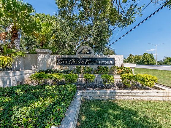Location! Location! Location! Convenient sought after Oaks at Countryside in Palm Harbor. Popular First floor 2 bedroom 2 bath unit with garage. Pet friendly (2 pets allowed),all age community. Community pool, spa and tennis court for your leisure time right across from unit. Great room plan with cozy wood burning fireplace that opens out to a screened lanai that's perfect for entertaining. Tasteful built-in shelving and low maintenance vinyl plank flooring through out the unit. The Great Room, Primary Bedroom and Lanai all have views of the pond. Kitchen has an extra large granite farm sink, wood cabinets, granite countertops, double door refrigerator and dishwasher. Commercial grade hot water heater, Toto toilets, and rain shower head in primary bathroom. Detached one car garage with storage, garage door opener and keypad . Full size Washer and Dryer included. Near the Pinellas Trail for biking, walking, shopping, restaurants are within minutes away. Short drive to award winning beaches and Tampa International Airport.