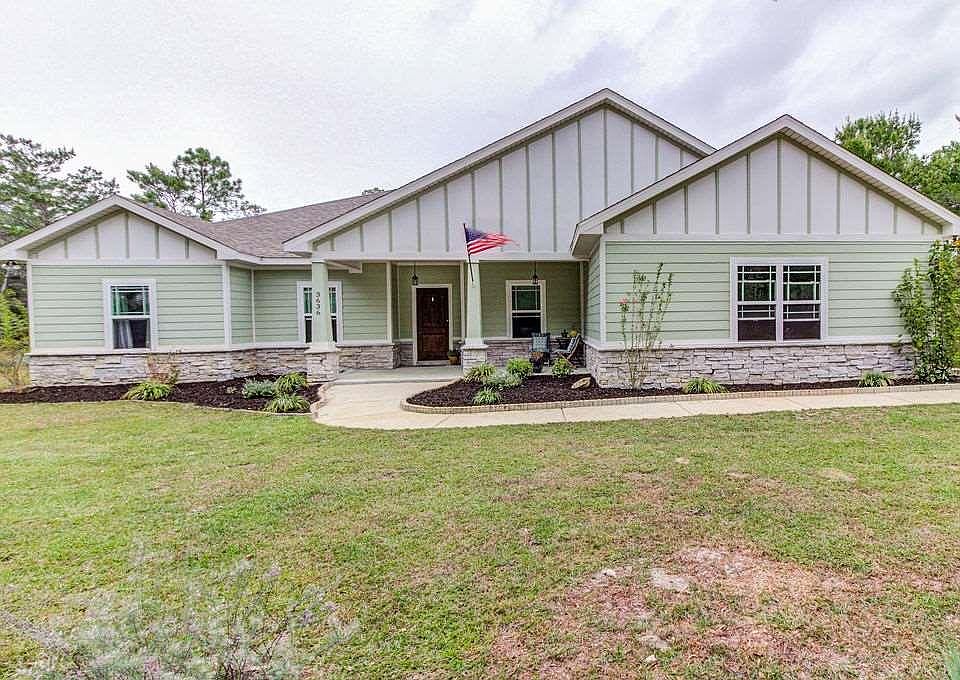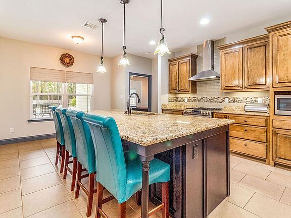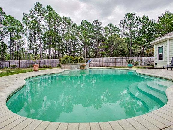 Gorgeous 2016 POOL home on OVER 3 ACRES in the heart of Gulf Breeze! This 4-bed, 3-bath, open and spacious home has all the features you are looking for including PRIVACY, as the home is set off the street with a green area in the front and an expansive, privacy-fenced backyard that includes even more property outside of the fence. The interior boasts beautiful flooring throughout the home with NO CARPET. The kitchen has all stainless-steel appliances, tall beautiful cabinetry, a French-door refrigerator, and a wine cooler, as well as a large, granite-topped island and breakfast bar that overlooks the great room. This room flows into the formal dining and the front living room entryways. The majestic, HIGH TREY ceilings in the main living spaces add to the sense of openness as well. The master suite is split from the additional bedrooms and offers an enormous ensuite bathroom with double vanities, a GARDEN TUB, and a double-headed, over-sized separate shower (with tankless hot water heater). Enjoy your morning coffee in the privacy of your room in the alcove with windows overlooking the backyard and the sensational in-ground POOL. Spend your evenings lounging in the hot tub which flows into the delightful pool, surrounded by brick pavers. Be able to relax from the pool while you watch your favorite show on the outdoor TV (which is wired for sound) or sip your favorite drink on the lanai while gazing at your backyard.