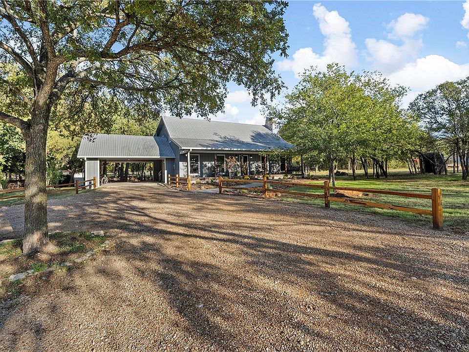 Builder's Personal Homestead. Schocke and Son's-known in the Waco area to be a premier craftsman. This modern rustic remodel on the builders own home was completed approximately 3 years ago and is another high quality project. Ready for you to make your own homestead. Fenced and crossfenced with large barn. This farm has raised horses, dairy goats and sheep. Several organic garden beds are ready for you to raise your own food. 7 different varieties of fruit trees; peach, persimmon, figs to name a few. Another smaller shed/barn. Approximately 2860 Square Feet, 4 bed/3 bath. 2 stories of charm with wonderful finishes. Master bedroom and another guest room are downstairs, 2 bedrooms up. Hardwood flooring in most of the home - no carpeting at all. Vaulted ceiling in the living area with a massive rock fireplace that graces the center of the room. Also in the living area is a separate wood stove that has the capacity to heat the entire house. No more worrying about the grid going down! Plenty of entertaining space with lots of natural light. The kitchen is a chef's dream with ample prep space, massive island that you can pull up a stool to, a complete coffee bar area along with a baking center. Viking cooktop. 3 tier dishwasher. All the best in upgraded, top of the line appliances can be found here. Roomy master bedroom/bath suite complete with a jetted tub, large walk in tiled shower and dual vanities. Separate, large walk in closet with built ins. A private, covered patio can be accessed from this bedroom - a great place to enjoy a morning cuppa! Up stairs you have two bedrooms and a roomy shared bath. Outside you can relax on your covered front porch or beautiful patio out back. Very large barn that boasts an air conditioned office space, small kitchen. Two bays, work shop area with roll up doors. Pasture to the front and to the back of the property, a total of approximately 5 1/2 acres. Some is treed, some pasture. Seasonal creek and po