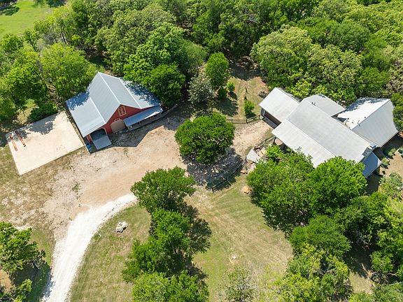 This 5.5 acre property boasts a spacious 4-bedroom, 3-bathroom home with ample room for your family to thrive. The home features a two-story layout with the master bedroom and a guest room and bathroom conveniently located on the ground floor. The master suite is a retreat of its own, offering a roomy space with a jetted tub, a large walk-in tiled shower, dual vanities, and a private covered patio. The second-floor houses two additional bedrooms and a generously sized shared bath. The living area is enhanced by a vaulted ceiling and a massive rock fireplace, complemented by a separate wood stove capable of heating the entire house. The kitchen is a culinary dream, featuring top-of-the-line Viking appliances, including a cooktop and a three-tier dishwasher. The property includes a large barn with air-conditioned office space, a small kitchen, two bays, and a workshop area with roll-up doors. There’s also a smaller shed or barn for additional storage. There are several organic garden beds and fruit trees, including peach, persimmon, and figs. The land is fenced and cross-fenced, ready for horses, goats, sheep, or any other livestock you desire. Relax on the covered front porch or the beautiful back patio, where you can take in the peaceful surroundings. Explore the pasture, wooded areas, seasonal creek, and pond. The property also includes a large concrete pad for RV storage or additional parking. Enjoy the added security of an automatic gate at the front of the property. Ross water is connected, and the wonderful West ISD ensures excellent schooling for your family!