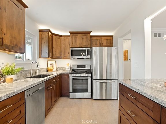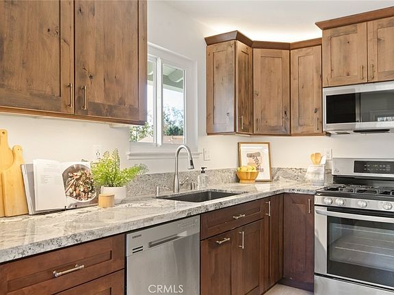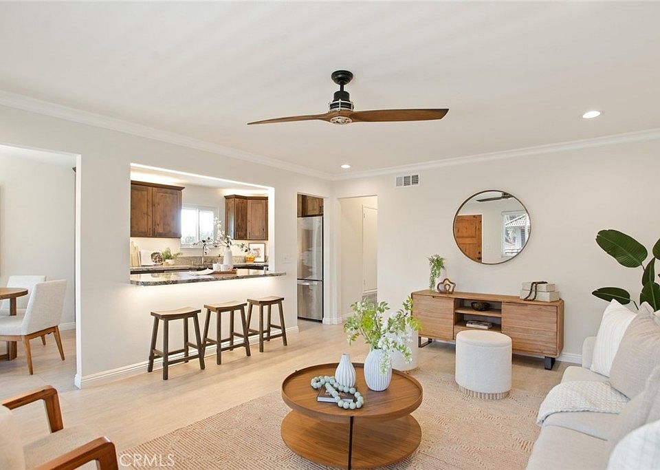 Located in a quiet, gated community in popular South Coast Metro, 3636 Main St is an upgraded 2 bed 2 bath end unit with a large 1 car garage. This move-in ready condo has the perfect flow starting with the front deck, moving into the open floorplan in the main living space and two oversized bedrooms with access to a private back patio. Large upgraded windows and sliders let in tons of natural light to the living room and kitchen while keeping the space private and quiet, BUT you can always enjoy central A/C! The kitchen has been opened up so it flows into the living room and was tastefully upgraded with high-end finishes, marble countertops, and stainless steel appliances. You and your guests can enjoy dining at the large island or in the dining space conveniently located off the kitchen next to the slider that opens to your private deck. The main living has been upgraded with modern laminate floors, custom lighting, and ceiling fan. Down the hall you’ll find a large storage closet perfect for linens or an additional pantry. The hall bathroom has had a full upgrade with custom tile work around the tub and shower. The large vanity and cabinets add so much storage and convenience to the space. Both large bedrooms are carpeted and have been upgraded with recessed lighting and ceiling fans. The primary suite includes a walk-in closet and a large ensuite that is ready for you to personalize it. This unit includes an extra deep 1 car garage which has washer and dryer hookups inside as well as 1 additional parking permit, so 2 dedicated parking spots total. The community has wonderful greenspaces all maintained by the HOA as well as a pool and spa just a short walk from the unit. Come make this turnkey condo your new home!