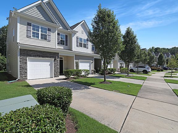 When Stylish living and location collide you get the best of both worlds! This Gorgeous 3 bedroom end-unit townhome offers elegance, charm and convenience. Community setting with wide streets and ample parking. Step inside to wide planked LVP flooring and open concept living. Living/Dining highlighted by lots of natural light, custom built-ins and dry bar with beverage fridge. Chef's kitchen features quartz countertops, white cabinets, stainless appliances and pantry. Oversized upstairs Primary Suite creates a serene place to relax with Dual vanity, water closet and spacious walk-in shower. 2 additional bedrooms, full bath and laundry complete the upstairs. Continue the living outside on the private Patio overlooking HOA natural buffer. Conveniently located minutes to shopping, restaurants and major Raleigh Highways. Here's your chance to have it all!