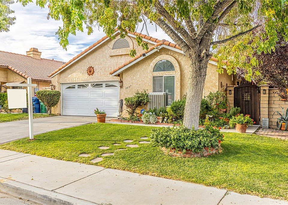 Updated Harris Home on a quiet tree lined street. This great starter home features 3 bedrooms and 2 baths. As you enter, you are welcomed by a spacious living room, vaulted ceilings and laminate flooring. Kitchen was remodeled recently and features custom cabinets, granite counters, tile flooring. Newer AC to keep you cool. Don't let the lot square footage fool you, the backyard is a lush paradise. Fruit trees galore. Enjoy your own pomegranate trees and fig trees while enjoying the privacy of your own private oasis. The backyard is completed with a patio cover and stamped concrete. Very close to schools, shopping, Palmdale's very own water park and a short drive to the 14 freeway. Don't wait, Call to See Today!