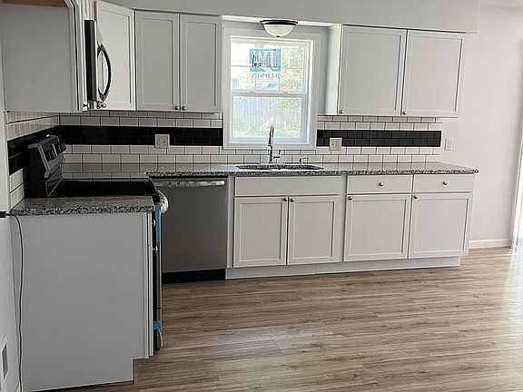 Quiet streetModern kitchenStainless steel appliancesRenovated homePacked full of characterSubway tile backsplash