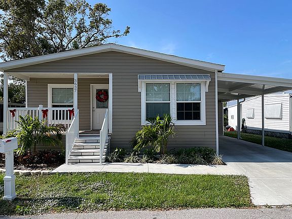 Welcome to this gorgeous 3 bedroom 2 bathroom 2022 Fleetwood manufactured home in Sarasota Florida! 1352 sq.ft. unfurnished with newer windows that allow the Florida sun to flow throughout and there is still that brand new smell. A Split floor plan with an open kitchen, dining area and bar seating with lots of counter/cabinet space. Newer stainless steel appliances, washer/dryer, dishwasher and microwave. There is tray ceilings with lighting in the living room and master bedroom. The master bedroom has a walk-in shower and double sink vanity, and a bath tub in the guest bathroom, laundry closet is located inside with NEW washer & dryer. Also, this ready to move in home includes an attached shed for storage, a carport and the driveway accommodates two vehicles. Paradise is awaiting your arrival!!! Leased land is $1016/ month which includes lawn maintenance, taxes and resort style amenities. Located on a cul de sac so less traffic in a resort style pet-friendly( check restrictions) community. The Winds of St Armands N is a beautiful 55 plus (will considers 40 plus) resort style community which includes a clubhouse, fitness center, billiard room, and a game room. You can keep busy with the on-site library, shuffleboard, horseshoes, heated pool, the spa, and scenic picnic area! Onsite management provides planned activities for fun in the sun, there are laundry facilities on site and RV storage available. The community has a shuttle service for beach and shopping excursions or just to meet new friends. Just a short drive to Lido Key Beach, restaurants and the mall, near the interstate for easy access. All listing information given to us is considered appropriate and reliable but we always recommend that Home Inspections be completed by independent companies who have a background and thorough understanding of manufactured homes. We cannot guarantee the accuracy of the information given to us or the condition of the home. Lot rents are determined by the community office, not our company.
