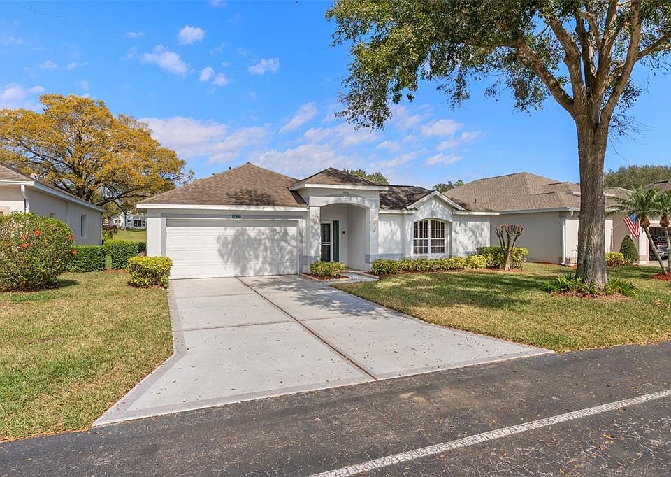 Just Reduced $10,000! Motivated seller of this St Ives II Courtyard home located on the 16th tee of the Championship Kings Ridge course. Home has 1722 heated SF with 2 BD/2.5 BA, Den and 2 car garage. The 2nd Bedroom on this home is actually a detached In Law Suite. This courtyard home is great for entertaining. New roof in June2014 and Trane HVAC unit in Feb2012. Stark Termite Bond just renewed April 2025. The Kitchen has newer wood flooring and granite counter tops. There is an additional screen enclosure that was added so you can enjoy the beautiful views of the golf course. All of the toilets have been changed to comfort height. There is a separate laundry room and the washer & dryer will remain. A new 4 Pt inspection report was done on this home. This home has had new Gutter Guards added. Kings Ridge is a 55 Plus gated golf community nestled in the rolling hills of Clermont. Enjoy the Kings Ridge Royal life style in the multi-million $ clubhouse with 3 heated pools, spas, tennis & pickle ball courts, billiards, shuffle board, shows, Bingo, cards and clubs galore. The monthly maintenance fees include: lawn maintenance including trimming of shrubs, care of irrigation system & irrigation water, Internet, TV cable & phone thru FiberOne, maintenance of roads and outside painting of home every 7 years. Take your golf cart to the Kings Ridge Plaza where you can do your grocery shopping, banking or dine out..