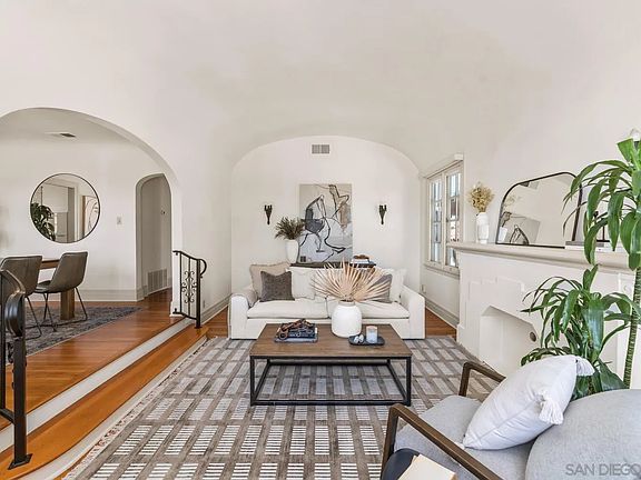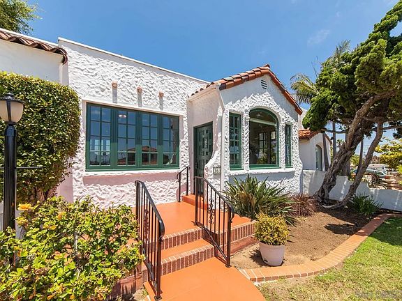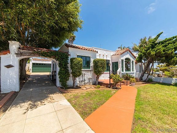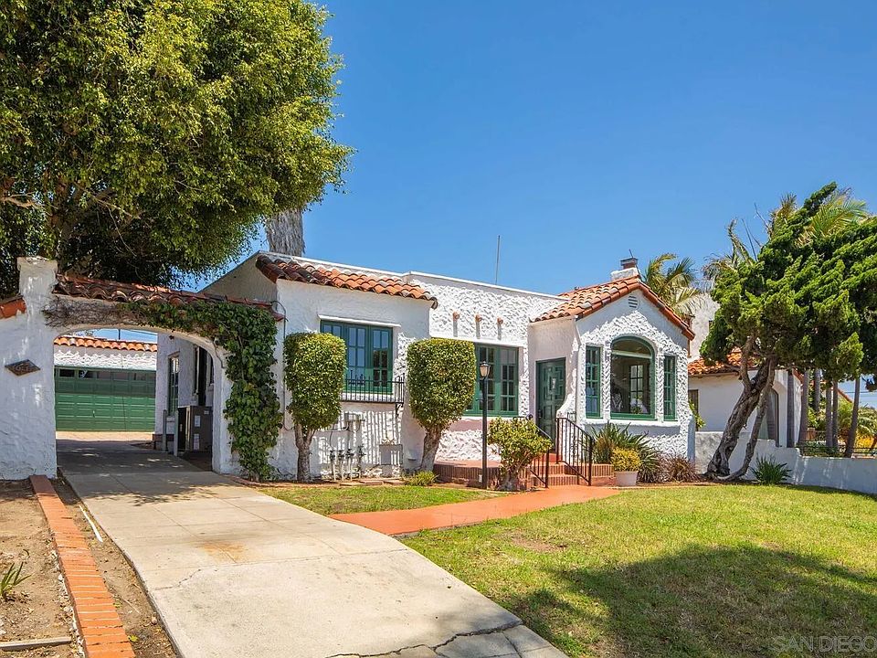 Charming 1920’s Spanish bungalow located in the heart of Plumosa Park in Point Loma with downtown skyline views. This 2 bed, 1 bath, 1,092 sq. ft. home features original hardwood floors, grand formal living room with 11ft coved ceiling, fireplace, vintage wall sconces, formal dining room, cozy breakfast room, & an approx. 530 sq. ft. enclosed multi-purpose sunroom with wood burning fireplace. This home is situated on an oversized 6,900 sq. ft. lot that features a large grass front yard & a beautifully landscaped backyard with a brick patio, planter boxes, & pond with wooden bridge. There is also a long driveway with a detached 2 car garage & potential alley access. Upgrades include newer central heat & A/C unit, dual pane windows & doors installed through the Quieter Homes Program, upgraded plumbing, upgraded electrical, newer water heater, window coverings throughout, & newer interior & exterior paint. Enjoy the Point Loma lifestyle with close proximity to beaches, Sunset Cliffs, Shelter Island, yacht clubs, the village, Liberty Station, restaurants, and all that this premium neighborhood has to offer.