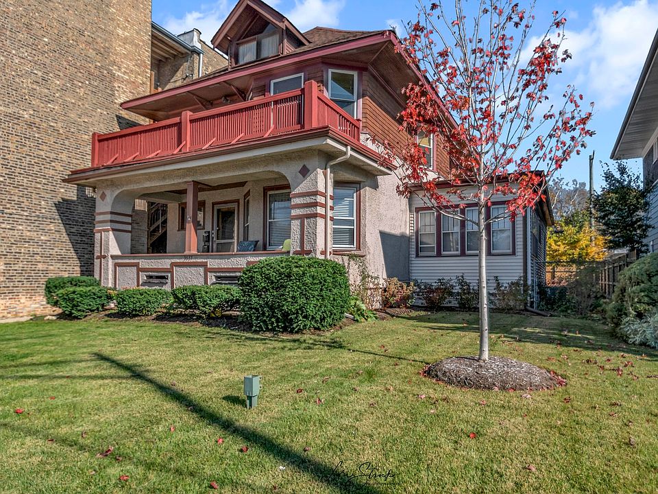 Chicago 2 Flat For Sale in Old Irving Park Villa District. Both units have been rehabbed and have in unit washers and dryers. The units are large and there is room to expand further in the attic and the basement. This CHARMING home features a classic silhouette with a steep roofline and extra wide eaves, as well as a welcoming front porch that is perfect for relaxing on a warm summer day....the property sits on an extra wide 50ft lot and because the lot is wider you get a 2 car parking pad next to the 2 car garage, a beautiful big yard and a dog run on the south end of the building. It's a 5 min walk to the Irving Park Blue Line, Metra stations and many restaurants too. Custom kitchen cabinets (both units). Quartz countertops (both units). Full quartz slab backsplash (upstairs). Modern tiled backsplash (downstairs). Chef's kitchen with upgraded appliances (both units). Full marble bathroom with Kohler polished nickel fixtures (upstairs). Brand new 4" white oak hardwood flooring (upstairs). Custom steel sliding glass office door (upstairs). Modern lighting fixtures (both units). New furnace (2022) and central AC (2023) (upstairs). Newly installed back patio, perimeter fence, and landscaping.