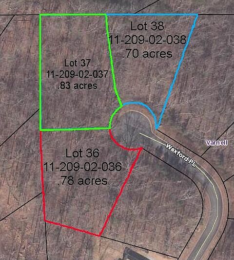 Build your dream home on (Lots 36 & 37 The lots take over half the cul-de-sac on Wexford Place so lots of privacy and space. Underground Utilities available, Lot 36 0.76 acres, Lot 37 0.83 acres. Will consider dividing.