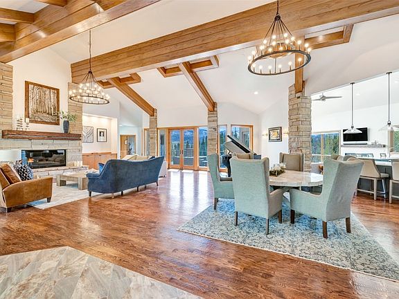 Immerse yourself in the splendor and serenity of nature in this exceptional home located in the coveted Dakota Ridge neighborhood, located 2.9 miles from downtown and 3.2 miles from the base of the ski resort. This enchanting, one-of-a kind estate is situated on 11.57 acres making it one of the largest lots in Dakota Ridge and there are no other houses in sight just unparalleled views of Mt. Werner and the Yampa Valley. Sparing no detail and covering over 8,189 square feet of luxurious living on two expansive levels this home has been designed to address your every need. All the necessities of the house are located on the main level including a lavish master suite with a generous walk-in closet, gas fireplace, private deck, and an impressive spa-like ensuite bath. The great room with vaulted wood beam ceilings features an impressive stone fireplace, stone columns, a deck that seamless connects to the inviting outdoor living area and a formal dining area prime for gathering and entertaining. No detail was over looked in the chef's kitchen from the breakfast nook that feels like you are among the aspen grove, to the den with fireplace that maximizes views with floor to ceiling windows, to the hidden pantry that seamlessly blends into the surrounding room while also providing ample storage for food and appliances. Downstairs there is fun for the entire family with a large living room with its own fireplace, full bar, pool table, as well as four bedrooms - each with its own ensuite bathroom. In addition, each bedroom has its own private deck and view of the ski resort. Impeccably built and meticulously designed, this stately county oasis fully delivers a mountain experience par excellence with a waterfall feature on the upper pond and a creek running to the lower pond. Property would make a wonderful family home or a fantastic multi-generational mountain retreat.