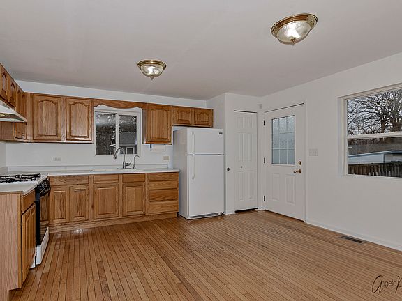 Very fresh 2 story on 3/4 of an acre features a huge open floor plan on the main floor including the kitchen plus a great room with hardwood floors and a flexible floor plan with plenty of room for a large dining area plus a living/family room as well as a foyer, freshly painted throughout. Brand new carpeting on the second floor and the stairs leading to 3 bedrooms including an extra large main bedroom that opens to the shared hall bath and has abundant closet space with a walk-in plus a double closet, and 2 additional very spacious bedrooms. New furnace (2018) and central air (2019), roof (2012), well tank (2019). White trim and 6 panel doors. Plenty of room for a garage. Close to schools, Metra train station to the city, and shopping. Huge back yard. The house was originally built in 1949 and was completely rebuilt on the existing concrete block foundation in 2000. Please note: this property is zoned R-5 and allows for a variety of residential uses (see Additional Information)