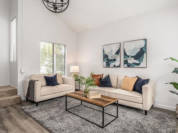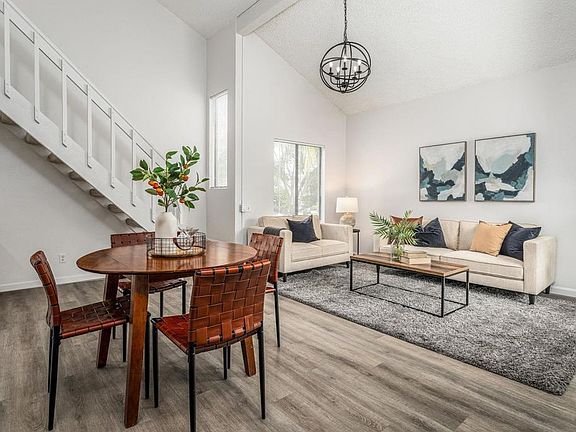 Situated in the very desirable community of Avocado Village in La Mesa, this charming two-story condo was recently updated and ready for you to move in! Lofty vaulted ceilings with wood beams offer natural light, and the generously sized rooms give a spacious feel throughout. A light filled bedroom with en-suite full bath gives onto direct access to the outdoors. A fully enclosed loft, with custom tongue and groove accents, doubles as a bedroom or study on the bright and cheerful second story. This room also has a huge closet for extra storage. Fresh paint, new luxury vinyl flooring in the main downstairs rooms, new Berber carpeting on the stairs and loft, tiled kitchen, stainless steel appliances, stylish modern chandelier lighting in the living area, new recessed lighting in the kitchen, new Adler kitchen faucet and new blinds for the numerous windows complete a fresh appearance. The brand new, professionally installed furnace, exceeds the heating requirements to keep this cozy abode warm on even the coldest nights. The washer/dryer combo is conveniently located off the kitchen. From a private patio you overlook large trees and a beautiful lawn leading to the pool area and Jacuzzi. A one car garage is located just steps from your stair entrance and one external parking parking place is available for you right in front of your door. You will be within walking distance of a major regional shopping center, and the excellent Avocado Elementary. Just a short drive away from the heart of Rancho San Diego with even more retail and food options. Easy access to the 94 and 125 freeways, and only 12 miles east of downtown San Diego, 18 miles from Naval Air station North Island and a 20 minute commute to base. Great opportunity for first time home buyers, a couple, new parents or empty nesters.