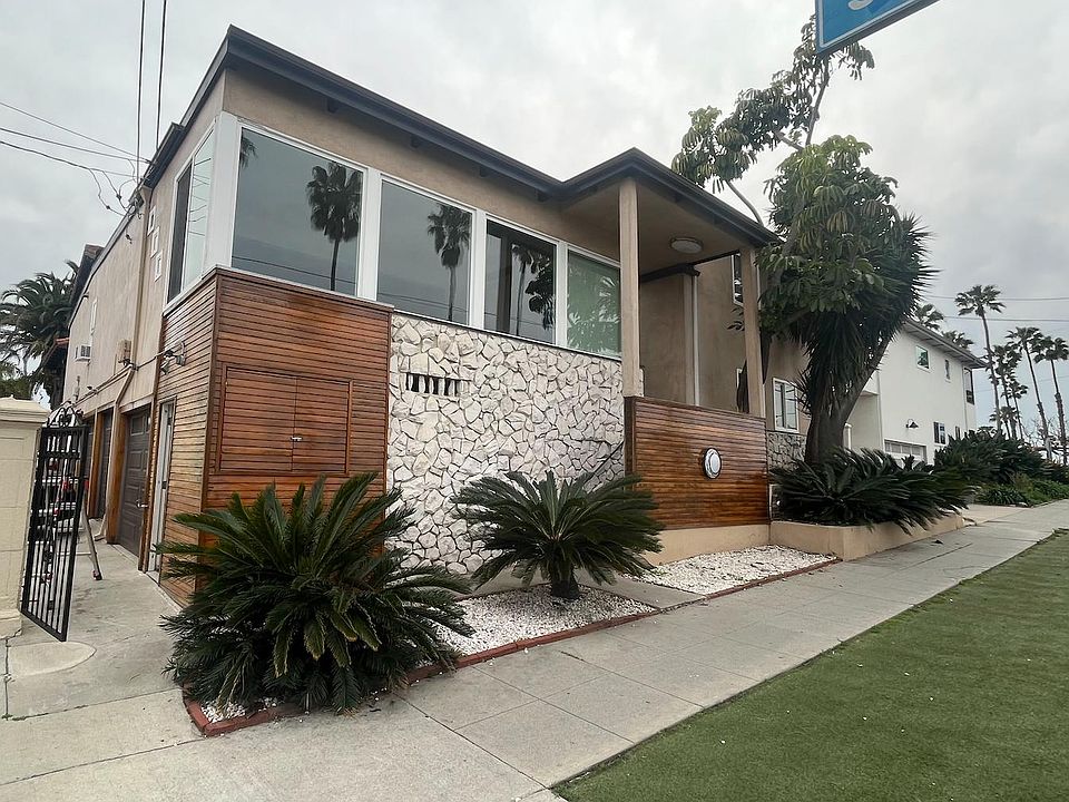 Massive 1 bedroom luxury apartment. Granite and stainless kitchen. Exposed beams and huge picture windows. Includes 1 car garage + 1 parking space. "Peekaboo" Ocean View Steps from the sand, beach bike path, LB Pier, and Bluff Park. Close to 2nd St shopping and dining, Alamitos Bay and CSULB. On site laundry. Tenant pays all utilities. Water/sewer on a shared meter - $50/mo to be paid along with the rent. $300 pet fee