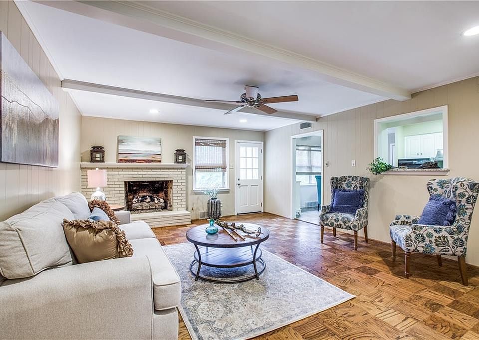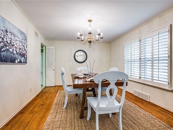 Incredible drive up appeal on this four bedroom home on an oversized lot in a great, central location! Kitchen has white cabinets, granite countertops with tumbled marble backsplash, and breakfast nook. Charming den has fireplace, beautiful built-ins and overlooks fully sprinklered yard and open patio. Mature trees grace the open front and back yard. Other amenities include hardwood floors, plantation shutters, generous sized bedrooms. security system, lovely dining room and 2 car attached garage.Walk to Degolyer Elementary, and close to many private schools. Close to Northaven Park and Trail with convenient commute to 635, 75, 35, and North Dallas Tollway. Move in and enjoy!
