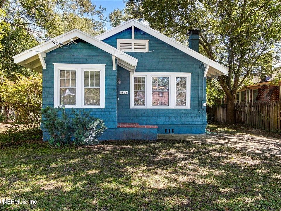 Welcome home to this delightful blue-gray cedar shake bungalow, just waiting for your personal touch. A spacious, tiled entryway greets you at the door—large enough to create a cozy reading nook or welcoming sitting area. The living room invites you to settle in with a classic fireplace & wood floors that carry throughout the home. Entertaining is easy in the generous dining room, ideal for gatherings with family & friends. The cheerful breakfast nook is the perfect place to enjoy a quiet cup of coffee. The efficient kitchen keeps everything within reach & flows into a cozy tiled TV room—great for movie nights or game-day lounging. Step out to the screened rear porch & enjoy breezy afternoons overlooking the peaceful backyard. Two comfortable bedrooms sit just off the breakfast hall. One has use of the full hall bath, while the second bedroom offers a large en-suite bath, laundry hookups, & direct access to the TV room-perfect for a private primary suite or flexible multi-use space. Warm, charming, & full of potential this sweet bungalow is ready to be loved. "SOLD AS IS"