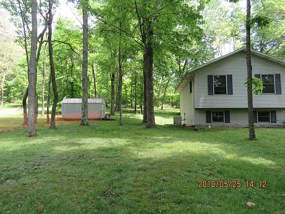 Very nice well kept home on wooded 3 acre lot. Features include living room, dining with sliding door to nice deck, kitchen with range, dishwasher, 3-4 bedrooms, 2 baths with plumbing for 3rd bath in lower level, attached two car garage and more, public water