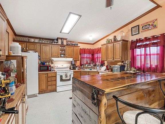 This well maintained move in ready doublewide sits on approximately 2 acres. This home features a 1 car detached garage that has electricity & water with an attached carport. This home is being sold as is.