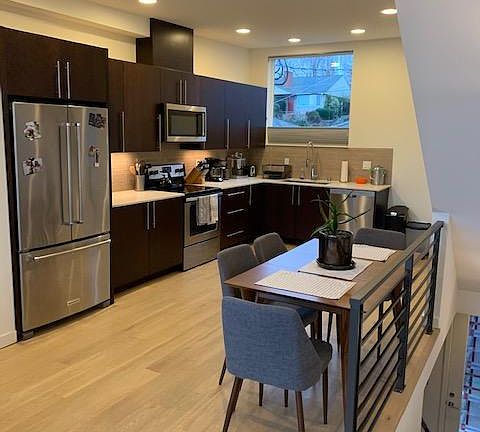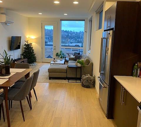 This North Queen Anne two bedrooms with DEN and one and three-quarter bathrooms, attached big garage townhouse built in 2015 is a place worth calling home. Entire house with new paint. Aside from a living room balcony and rooftop deck with views of Fishermen's Terminal, the canal and the Olympic Mountains, this tranquil home is a jog across the 15th Ave bridge from downtown Ballard, a quick bus ride south to downtown Seattle, and about one mile from Seattle Pacific University. This light-filled home is both sanctuary and a perfect place to entertain with living room and modern kitchen all part of a cozy flow. We are keeping this a no smoking home indoors, a cat or a small dog is OK. The furniture in the pictures not included. Please arrange showing by messaging the listing agent. No smoking is allowed. Renters will pay the utilities. First month rent and security deposit at the signing. Good credit and rental history are required.