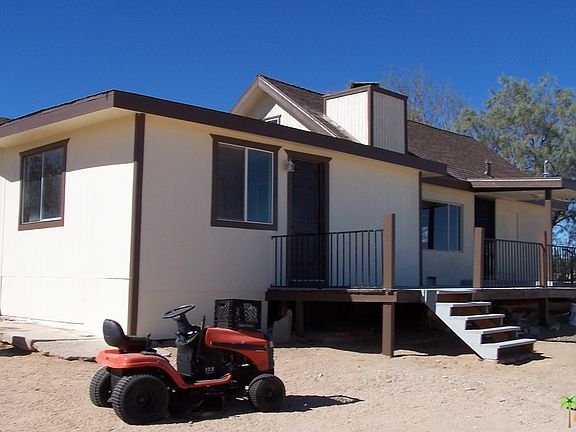 This home has been remodeled, freshly painted, laminate flooring, new kitchen cabinets, etc. and is sitting on 5.0 acres of land. It is a two bedroom, one bath, large great room with fireplace. There is also a loft up in the living area with pull down ladder. The one bedroom is huge with a walk in closet. Enjoy the lovely large front porch that takes in the views of the surrounding hills and mountains. There is a large storage unit, fencing around the house area, large mature trees and plants. It is on City water and power and is only a little over a mile on a dirt road. This home would be great for the first time home buyer, a second home for a retreat, or a very unique vacation rental. This one is a must see. Don't Wait - Call Now!!