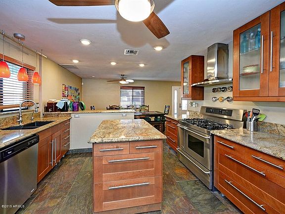 This ranch style home in a charming red brick neighborhood has been fully updated. The interior is elegant and contemporary. Kitchen is open with stainless appliances, contemporary glass front cabinets, generous storage, island, and granite counter tops. Master suite is spacious and includes a large walk in closet, jetted tub, and granite bathroom counter tops. Backyard oasis has stone fountains and Mediterranean blue Pebbletek pool with tumbled concrete paver deck. Sprinkler system and irrigation, alarm system, updated Low E windows, updated copper piping, water softener system, and many more extras. Neighborhood Description This charming red brick neighborhood borders the swanky Arcadia area. Local area charm includes being nestled amidst an array of local foodie hangouts including; La Grande Orange, Becketts Table, Chelsey's Kitchen, North, The Vig, Arcadia Tavern, Tee Pee, and more. Easy access to freeways and a short drive to Costco, Target, Walmart, and a variety of grocery stores. This central location is ideal!