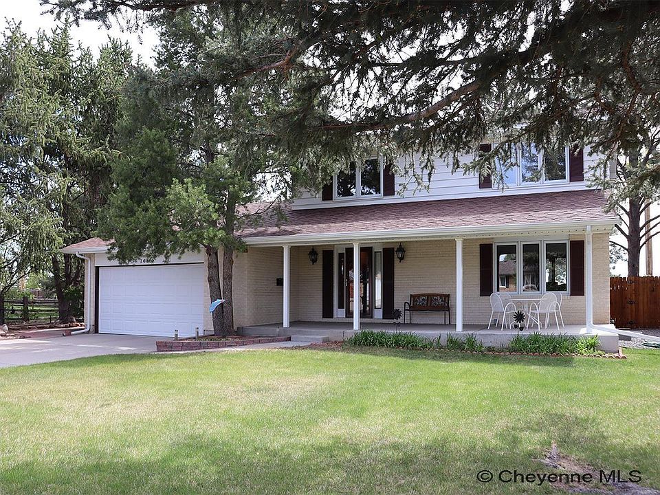 All of the conveniences you would find in most rural properties, but located in the center of Cheyenne! Four garage bays, a workshop, storage shed, mature landscaping, RV parking, sprinkler system, covered front porch, covered patio, and heated shop. All of this included with a beautiful four bedroom, three bath home. This great home offers a primary suite, sunroom, main floor family room with fireplace, formal dining room, stunning hardwood floors, and you'll love the granite countertops that accent the custom built kitchen. The bathrooms were recently remodeled, and the upper level had carpet installed last year. Don't miss your chance to make this home yours!