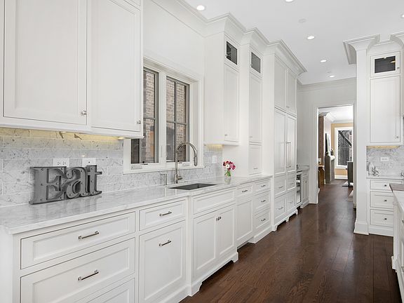 Immaculate newer construction extra wide 6Bed/4.3Bath SFH on a 30' lot by Hibernian Development located in the Southport Corridor & coveted Blaine School. This remarkable home boasts a functional floor plan complete w/an attached garage on an extra-wide footprint w/generous room sizes throughout. The main level feat a formal living room w/FP & dining room, huge walk-in & sep butler's pantry that leads to massive eat-in kitchen w/oversized marble/butcher block island w/comm'l grade appliances & custom inlay cabs. The kitchen leads to a large FR w/glass doors that open to a walk-out patio w/FP ideal for entertaining. The garage is attached through main lvl breezeway. Bedroom level offers a master suite w/massive WICs, immaculate marble bath w/dual vanities, walk-in shower & soaking tub, 3 add'l bedrooms & laundry room. The penthouse level offers a multi-purpose room w/stunning dormers, 1/2 bath & rooftop deck. LL feat radiant heat, rec room, playroom, 2 large bedrooms & exercise room.