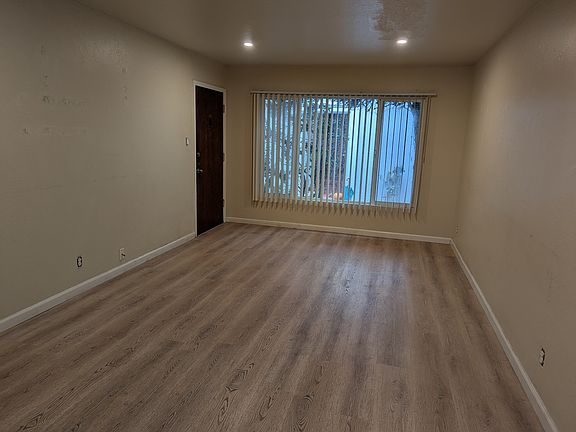 Freshly painted apartment with dishwasher and laminate flooring. Apartment is a 2 bedroom, 1 bath, downstairs unit. It is located in the back of the building, away from the street. The street is a quite cul-de-sac backing up to the San Leandro river. The apartment has washer and dryer hook-ups. Double pain windows, updated electrical, and copper pipes. There is one off street parking space offered. It is centrally located, walking distance to the San Leandro library, Bancroft middle school, and the newly remodeled Memorial Park. Also walking distance to Sprouts Market.