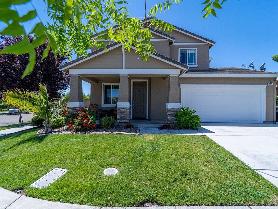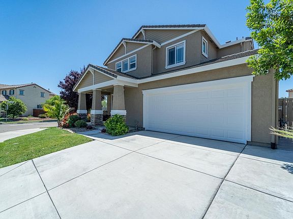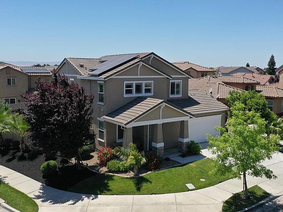 Welcome to the best of the Mossdale community in Lathrop! This beautiful corner lot home is located in an idyllic setting, a unique floorplan of 4 bedrooms, 3 full bathrooms, and a powder room. The open concept family room flows seamlessly into the bright and spacious kitchen with granite countertops, steps away from a brand new landscaped backyard complete with large lawn space, outdoor patio seating & fireplace for those summer nights. On the second floor, relax in a spacious & bright main bedroom suite equipped with dual sinks, a walk-in closet, and a large shower/spa tub. Enjoy a spacious junior main bedroom with an en suite bathroom and down the hall are two perfect size bedrooms and a full hallway bathroom.Features of this home: Newly interior paint, Tesla solar panels, Nest Smart Thermostat, Vivint security camera system, built-in storage in garage, new sprinkler systems for easy landscaping maintenance, Newly painted garage door, and a lovely covered front porch seating area.