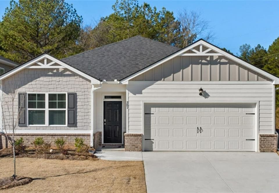 Seller will pay up to $10,000 towards buyer's closing costs using the preferred lender, DHI Mortgage. Twin Lakes is only 2 miles from I-85, 5 minutes to Downtown Hoschton/Braselton with their quaint shops, restaurants and local brewery. Newer sought after Jackson County Schools! SPECIAL FINANCING! Estimated Completion August 2024. The CALI floor plan is an affordable 4 bedroom, 2 bath One-Level home with the Owner's Suite on the 1st floor and a rear COVERED patio in a master planned community of TWIN LAKES with AMAZING AMENITIES: POOL - CLUBHOUSE - FITNESS CENTER - PLAYGROUND - DOG PARK, LAKESIDE PAVILION and WALKING TRAILS to bike or stroll around the serene onsite LAKES. Home seekers will love this brand new home in a premier master planned resort community with gorgeous tree lined and cart pathways. Kitchen features WHITE cabinets with granite countertops and stainless steel appliances. Hardwood floors on 1st floor except bedrooms & baths. Relax and enjoy your coffee in the morning, or a glass of wine with friends in the evening while grilling on your private patio. Total Price includes 2 zone lawn irrigation system, window blinds, 2 ceiling fans, garage door opener, architectural shingles, 4 sides brick water tables, etc. Smart Home connected. Jackson County's newest Premier Master Planned Community. Ask about the FREE 10 year warranty through RWC with this home! Twin Lakes is only 2 miles from I-85, 5 minutes to Downtown Hoschton/Braselton with their quaint shops, restaurants and local brewery. Northeast Georgia Medical Center is only 15 minutes away and Chateau Elan Winery and Golf Club is just 10 minutes away! NEW PUBLIX Supermarket is planned at the front entrance to Twin Lakes off Highway 53. Stock Photos used.