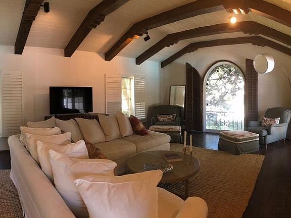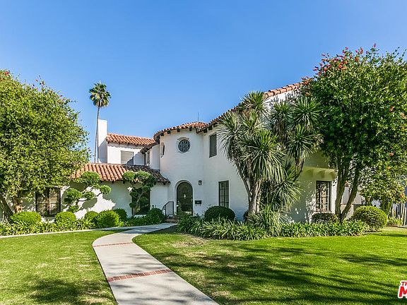 Situated on a quiet corner, this beautiful Spanish home is a true gem in the heart of Hancock Park! The impressive rotunda foyer welcomes you in, leading into elegant step-down living room with wood beamed ceiling, fireplace, and French doors to patio, large formal dining room, and kitchen with a lovely breakfast room, pantry and built-in appliances. Family room with the view of the garden and pool, office/guest bedroom and powder room complete downstairs. The grand staircase boasting dazzling Spanish tiles, wrought iron baluster and stained-glass windows, takes you upstairs to 4 generous bedrooms and 2 bathrooms. Step outside to a verdant garden with sparkling pool and lush landscaping, inviting you to fully enjoy the quintessential California living!