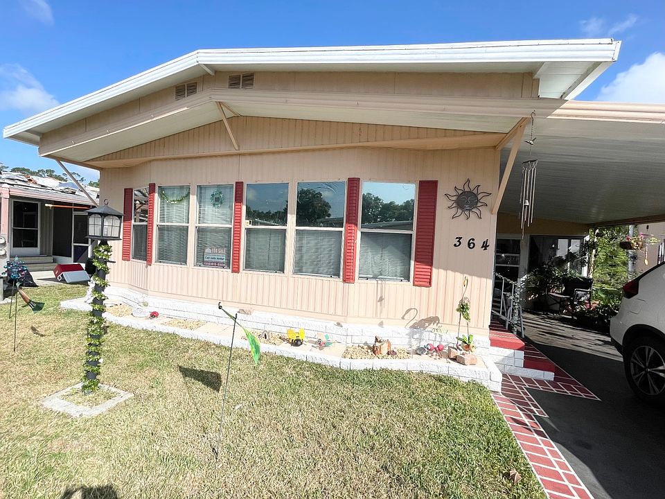 This home WONT LAST LONG and is a MUST SEE!!! This very cute, clean and well-maintained home is located in a 55+ Community! The lot rent on this home is $635 per month starting and includes lawn mowing, water, taxes and the use of the amenities such as the use of the clubhouse, heated pool, shuffleboard and more! This community is close to lots of shopping, restaurants, a movie theater, medical facilities and I-4! This home has a membrane roof which was just recently sealed! The central A/C and heat unit has been serviced regularly and runs very efficiently! The hot water heater is around 2 years old! All of the blinds in the home have been replaced! Most of the lighting in the home has been replaced! There is an attached carport with room to park up to 2 vehicles or park just one vehicle and have plenty of room under the carport for a small table and chairs if you wish to turn part of the carport into a covered patio! At the back of the carport you will find a Florida room with where you can enjoy a cup of coffee in the morning! Inside the back of the Florida room is a nice size storage shed with a washer and dryer along with plenty of room to store anything you wish! This home also has a large quiet back yard which has a very private feel with no back door neighbors! You can enter this home from either the Florida room or the carport. When entering into this home from the carport you will find a nice size kitchen with a small wall dividing the kitchen and living room! Both the kitchen and living room are decent in size! There is lots of room to place your furniture in this home! There are lots of windows in both the kitchen and living room giving this home plenty of natural light! Just off of the kitchen is a small hallway leading to the master bedroom which is large in size! The master bathroom is large in size and has a 1/2 bathroom inside of it! The main bathroom is located just across the hallway from the master bedroom and has a tub/shower combo. The 2nd bedroom is located at the end of the hallway and is decent in size and has a door leading out to the Florida room making it easy to access the laundry area! COME SEE THIS HOME TODAY!! WONT LAST LONG.....