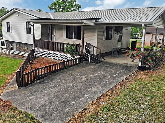MINI FARM!! This 4 bedroom 2 bath home has so much to offer with fenced in pasture, pond, outbuildings & barn. Mountain Views, secluded privacy with 8.14 acres. Handicap access from entrance on carport, entering into living room, kitchen, mud room, 3 bedrooms, 1 bath on main level. Additional bedroom, bath and kitchen on lower level. Washer and dryer hook up is in outside cellar with room for all your canning goods. Large separate garage with power and attached additional pole barn storage on each side. Looking for that perfect place to farm and garden look no further this home offers all you need.