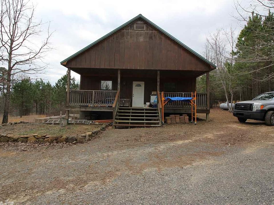 Beautiful, immaculate home at end of lane with privacy. Nineteen acres of timber. Garden spot. Pond. Chicken house and pen. One story with upstairs with catwalk dividing each end. Appliances remain with home plus washer and dryer. Laminate floors, carpet in bedrooms and upstairs, and ceramic in bathrooms. Vault ceiling--pine. Heated with 5-burner infrared stove and a decorative wood stove. Three window units for air. Lots of room for good hunting. This is a must see!!!!!