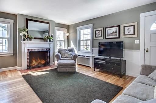 Move right into this updated picture perfect well maintained cape cod style home that is set back from the road. Updated spacious kitchen boasts a newer stainless steel range and microwave, newer maple cabinetry and a sunny eat in dining area with a big picture window overlooking the oversized backyard & garden area. Relax in the living room adorned with pottery barn decorating style, hardwood flooring, custom built-ins w/a gorgeous mantle over the wood burning fireplace. Other features within the home include an updated full bathroom, Brand New Beautiful Siding, Weil McLain boiler/heating system in 2013, newer oil tank 2009 & More! The Mudroom/Breezeway offers an added convenient space. Upstairs you'll find another large bedroom plus two double closets. The Finished lower level family room offers additional spacious living area. A backyard built for entertaining w/newer beautifully designed stone patio and fire pit. 1 car garage w/loft for storage. Great Commuter Location!