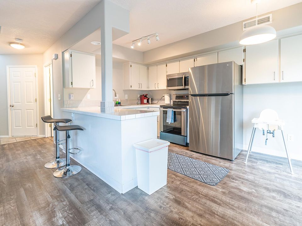 - Exterior features: Bicycle storage, Front Driveway, Heating system: Forced Air, Keyless Door Entry Deadbolt Lock, New Bathroom Vanities, New Kitchen, New Kitchen Quartz Countertop, Newer Appliances, No Utilities included in rent, Private Backyard, Ring Security Camera Doorbell