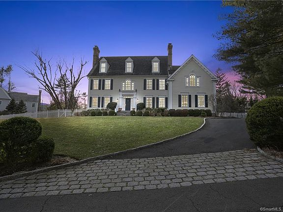 Welcome to this elegant home on 1.19 lush acres with sumptuous decor and unbeatable space and flow. This well-proportioned classic with soaring ceilings and tons of light provides remarkable gathering spaces, as well as cozy niches throughout the 5700 square foot interior. Huge kitchen with sunny breakfast area flows seamlessly into family room with massive stone fireplace and leads to stunning patio and lush backyard space. Double-height foyer, five professionally designed bedrooms including luxurious master suite, inviting wood-paneled office with fireplace, fully-finished 3rd floor with separate bedroom and bath PLUS finished walkout basement with fireplace. Wonderfully upgraded home just a short distance from town, NC Field Club and Country Club of New Canaan.