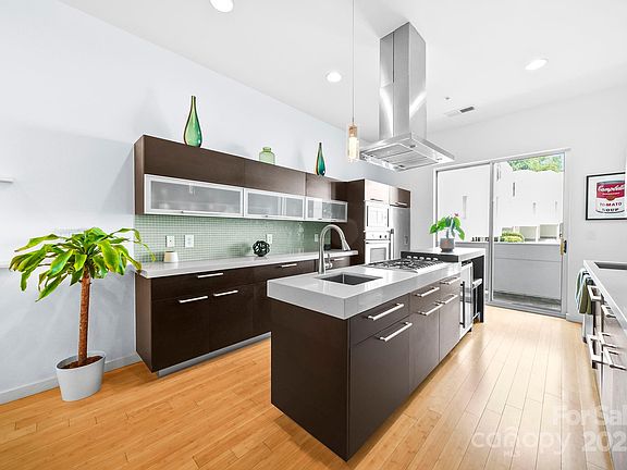 A rare opportunity to own in Celadon – one of the most unique and thoughtfully designed condo/townhome communities in all of Charlotte. Located in the heart of the highly desired Wesley Heights neighborhood with DIRECT access to the Stewart Creek Greenway off the private back patio, and just a stone’s throw from Frazier Park. This highly walkable location is within close proximity to Bank of America Stadium, Uptown, and all of Charlotte's most sought after parks, breweries, and restaurants – including the incoming Savona Mill mixed-use redevelopment. The modern layout, open floor plan, floor to ceiling windows, and large ceiling skylight allow for natural light throughout all hours of the day. The main (2nd) level boasts an open floor plan with 12ft ceilings and connected kitchen featuring stainless steel appliances, wall oven, dual dishwashers, and gas cooktop. The modern design includes two private balconies, one featured off the kitchen, and the other off the living room with a connected spiral staircase down to a second back patio connected to the Steward Creek Greenway via a private walking path. The expansive primary suite includes a walk-in closet and spa-like primary bathroom with deep soaking tub, dual rain shower heads, and double sink vanity. The ground floor provides access to the unit via a large entry foyer connected to the spacious one-car garage equipped with 220V outlet and large storage closet. Quick and easy access to I-77/I-85 and only a 10-15 minute drive to Charlotte Douglas Airport. Smart lighting throughout, automated floor to ceiling wall shade in primary bedroom, and tankless water heater – this dream home is full of thoughtful upgrades. Make this rare Wesley Heights gem yours while you can!